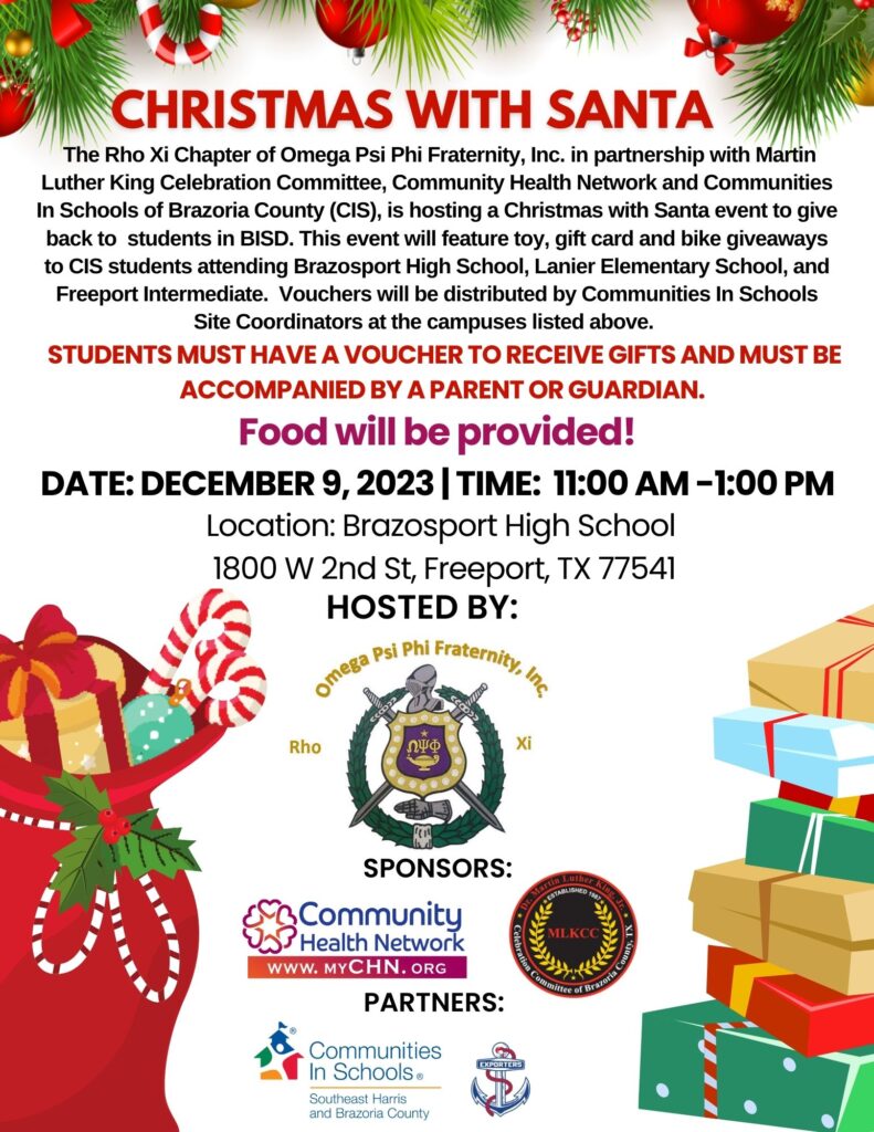 Freeport, TX November 29th, 2023 – MyCHN, in partnership with the Rho Xi Chapter Omega Psi Phi Fraternity Inc, the Martin Luther King Celebration Committee, and Communities in Schools of […]